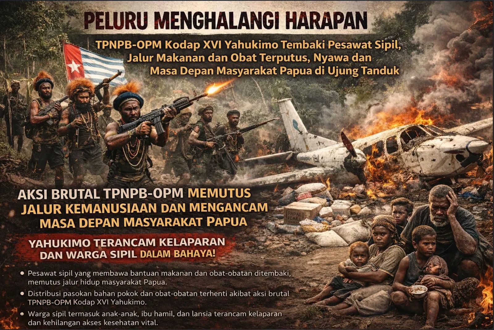 INFONUSANTARATIMUR.COM – Aksi penembakan terhadap pesawat sipil yang membawa bamak dan obat-obatan bagi masyarakat Yahukimo menjadi bukti nyata bahwa TPNPB-OPM Kodap XVI tidak menginginkan kemajuan, keselamatan dan kesehatan mayarakat Papua. Tindakan brutal ini bukan hanya membahayakan nyawa awak dan penumpang pesawat, tetapi juga memutus jalur kehidupan masyarakat yang bergantung pada pasokan bahan pokok, obat-obatan, dan kebutuhan penting lainnya.