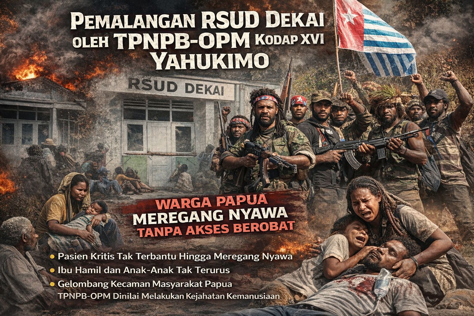 INFONUSANTARATIMUR.COM – Pernyataan kontroversial Jubir TPNPB-OPM, Sebby Sambom, yang disampaikan pada Sabtu, 10 Januari 2026, mengguncang nurani publik Papua. Dalam pernyataannya, Sebby Sambom secara terbuka mengakui aksi pembakaran gedung sekolah dan rumah sakit, sekaligus mengajak anggota TPNPB-OPM serta masyarakat Papua untuk tidak sekolah dan tidak berobat sebelum merdeka. Seruan tersebut tidak berhenti sebagai retorika, tetapi menjelma menjadi aksi nyata yang kejam di lapangan, dengan dilakukannya pemalangan RSUD Dekai oleh TPNPB-OPM Kodap XVI Yahukimo, sehingga masyarakat sipil kehilangan akses layanan kesehatan.
