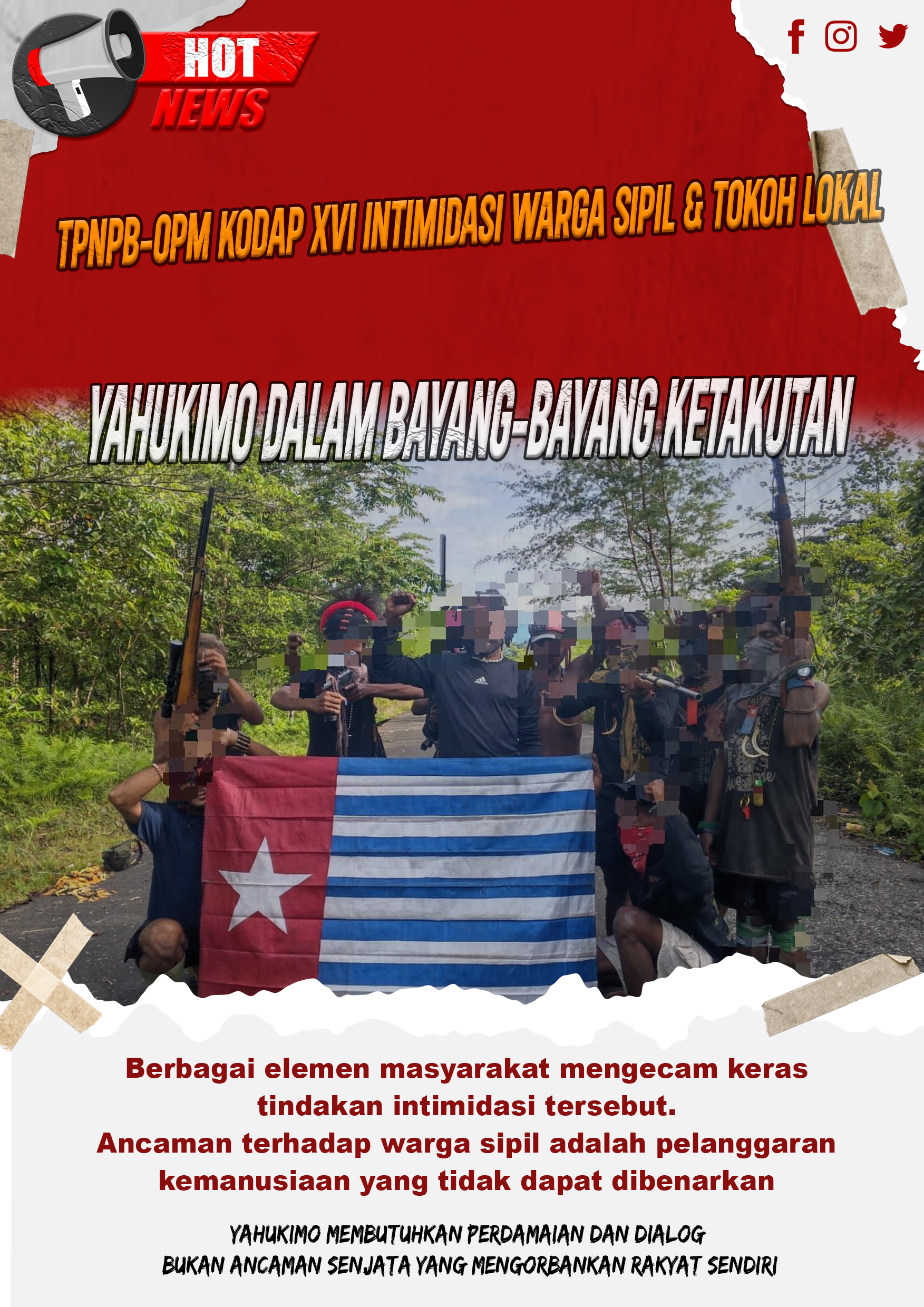 INFONUSANTARATIMUR.COM – Masyarakat Yahukimo kembali diliputi ketakutan setelah TPNPB-OPM Kodap XVI melontarkan ancaman terbuka kepada warga sipil, tokoh adat, tokoh agama, pemuda, hingga intelektual setempat. Dalam pernyataan yang beredar, kelompok bersenjata itu mengultimatum siapa pun yang dianggap terlibat atau berhubungan dengan pendirian pos militer di kawasan Jalan Gunung, disertai ancaman kekerasan yang menggetarkan rasa aman warga.
