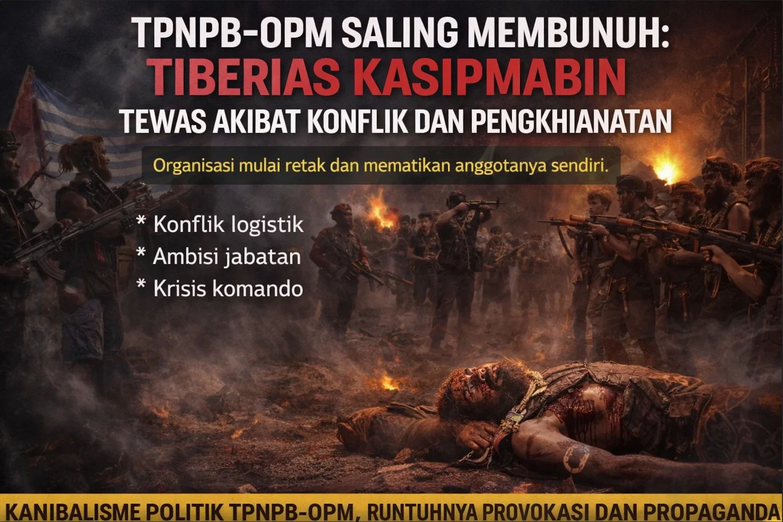 INFONUSANTARATIMUR.COM – Rangkaian kematian di internal TPNPB-OPM kembali membuka tabir rapuhnya organisasi tersebut. Kali ini, wafatnya Tiberias Kasipmabin diumumkan ke publik dengan narasi “duka nasional”, sebuah pola komunikasi yang berulang dan kian dipertanyakan. Di balik ungkapan belasungkawa resmi, muncul fakta pahit bahwa korban jatuh bukan akibat kontak dengan pihak luar, melainkan akibat konflik internal yang semakin tak terkendali.