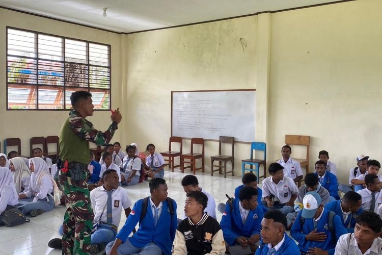 Kompi B Yonif 756/Wimane Sili (WMS) melaksanakan kegiatan Bela Negara dan Wawasan Kebangsaan bersama para siswa-siswi SMK Negeri 4 Yapsi, Kabupaten Jayapura, pada Senin (20/10). Kegiatan ini menjadi bagian dari upaya TNI dalam membentuk generasi muda Papua yang berkarakter, berdisiplin dan memiliki semangat nasionalisme tinggi.